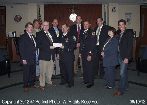 At the Lynbrook Village Board Meeting held on September 10, 2012, the Lynbrook Chamber of Commerce presented donation checks supporting LFD's upcoming fundraiser for Nassau County Firefighters Operation Wounded Warrior that will be held on September 30th. The fundraiser, called Community Concerts for the Troops, will be LFD's second annual fundraiser for Operation Wounded Warrior of which Lynbrook firefighters are active members. The chamber presented a check of $250 from one of their weekly car shows plus a second check from the Chamber organization of $1000. Members of the Chamber, including president Bill Gaylor, presented the checks to fundraiser committee chairperson Ex-Chief Kevin Bien, and Ex-Captain Richard Straub The mayor and village board were on hand for the presentation. |
