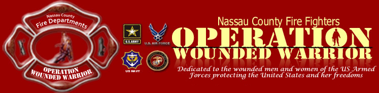 The LFD will also be accepting donations from firefighters and the public of socks, t-shirts, gym shorts, sweat pants, phone calling cards, bicycle gloves for wheelchair use, toiletries, or anything useful for our wounded veterans currently under care in the hospital. Additionally, 2011 NCFF-OWW t-shirts will be on sale. All monies raised that day will go to the NCFF-OWW program for the purchase of Christmas gifts for our wounded warriors being treated in Bethesda and Walter Reed Hospitals and at Camp Lejeune and Fort Bragg. Nassau firefighters in the organization will be traveling in convoys, dubbed the “Long Red Line,” to these four locations in December to distribute those gifts. If you can not attend Lynbrook’s fundraiser and wish to make a donation to the NCFF-OWW, a check can be mailed to the Lynbrook Fire Department, One Columbus Drive, Lynbrook, NY, 11563. Mark the check and envelope “Wounded Warrior.” Anyone needing information about the fundraiser can contact Ex-Chief Kevin Bien at 516-993-6074. “I ask everyone in this community to support this worthy cause for our wounded warriors who have given so much for our safety and the safety of our country,” said Lynbrook Fire Chief Michael Hynes. “And always keep them in your prayers.” To download a printable with details of this event, click here. |