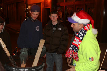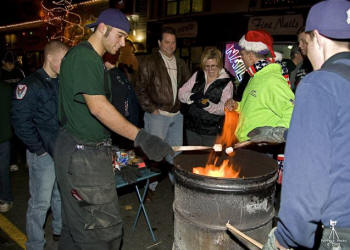 On Saturday morning, November 29, 2008, Santa Claus arrived in Lynbrook at the Earle Avenue parking lot with the help of Truck Company 1 who drove Santa from the North Pole. Santa then greeted Lynbrook's children before travelling to the Lynbrook Movie Theatre for a movie. On Friday evening, December 5, 2008, the Village of Lynbrook lit the village Christmas tree at Five Corners while other Winter Celebration activities took place on a closed Atlantic Avenue. Members of Tally-Ho Engine 3 manned three burning barrels on the street that kept residents warmed on that chilly night. The Lynbrook Junior Fire Department members also sold coffee and popcorn during the celebration. |