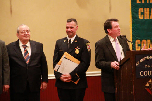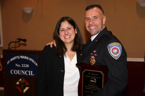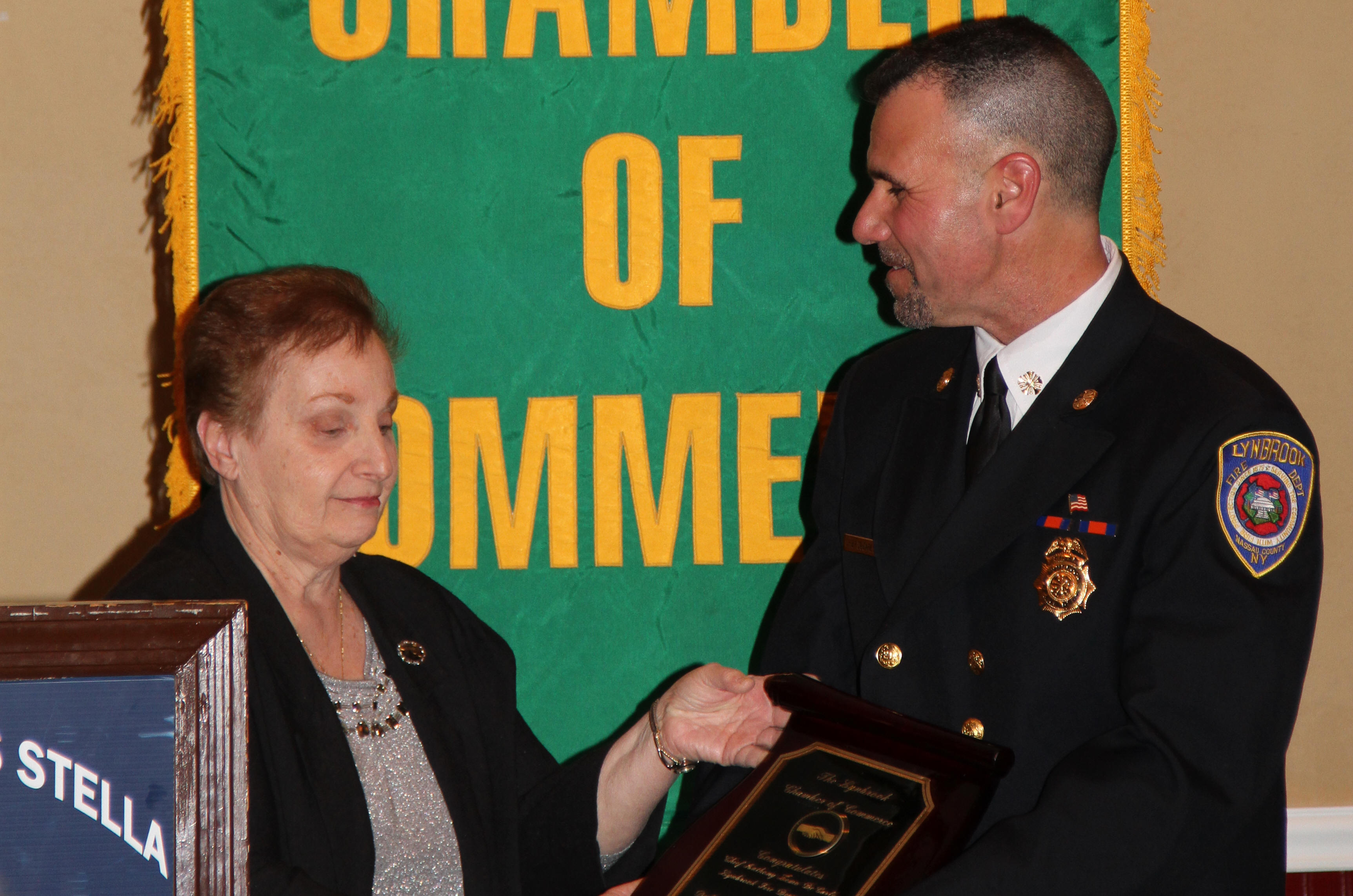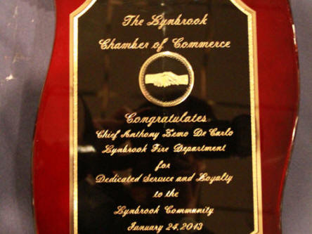Chief Anthony DeCarlo Honored by Lynbrook Chamber of Commerce Story by Ex-Captain Steve Grogan; Photos by Lt. Brian Grogan On January 24, 2013, Chief Anthony "Zemo" DeCarlo was honored by the Lynbrook Chamber of Commerce at their Annual Installation of Officers and Dinner Dance which was held at the Knights of Columbus Hall on Hempstead Avenue. Besides Chief DeCarlo the others honorees that evening were Vincent and Joseph Carusone of Vincent's Restaurant, who catered the affair; Lynbrook Detective William Diebold; and outgoing Chamber President C. William Gaylor, Jr., who owns Lyn Gift and Hallmark Card Shop. |