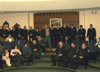 First Lieutenant Chris Kelly of Engine Co. No. 1 was honored by the Mayor and Village Board at the Lynbrook Village Board meeting on November 20, 2006, for his rescue of five people from a house fire on Horton Avenue in the early morning hours of October 27, 2006. Kelly was driving home that morning from the airport when he spotted the fire. Lt. Kelly called it in, and rescued five people, three of them young children from the burning house. The whole Department responded and put out the fire confining the fire damage to the rear of the first floor. The story of Kelly's rescue efforts was read by the mayor after which Kelly received a standing ovation by the Village Board and residents in attendance. |