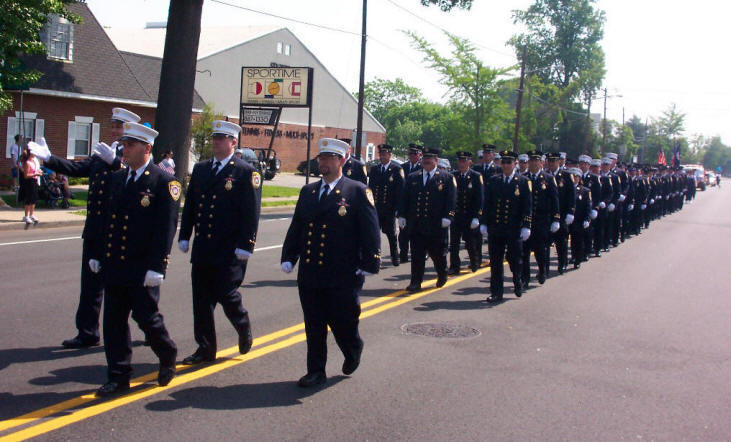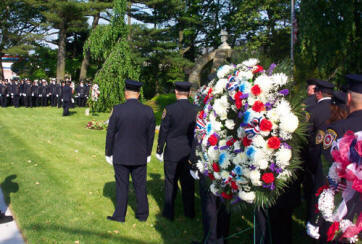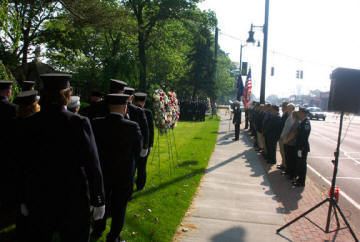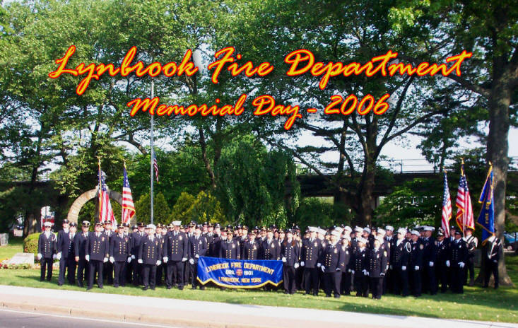 Story & Photos by Steve Grogan On Memorial Day, May 29th 2006, the Lynbrook Fire Department, the Ladies Auxiliary, and the Junior Fire Department, led by Chief Keith Festa, gathered at the Firefighter’s Memorial at Sunrise Highway and Earle Avenue for the annual memorial service for four LFD members, two from Hose Company, and two from Truck Company, who were killed in action in World War II. Their stone markers are located around the base of the Firefighter’s Memorial, which also honors six volunteers killed in the line of duty in this village. Both Hose and Truck Companies placed wreaths at each of the four markers. The Chiefs then placed a department wreath at the memorial. After the services the whole department marched in the annual Memorial Day Parade down Merrick Road which was sponsored by our VFW.